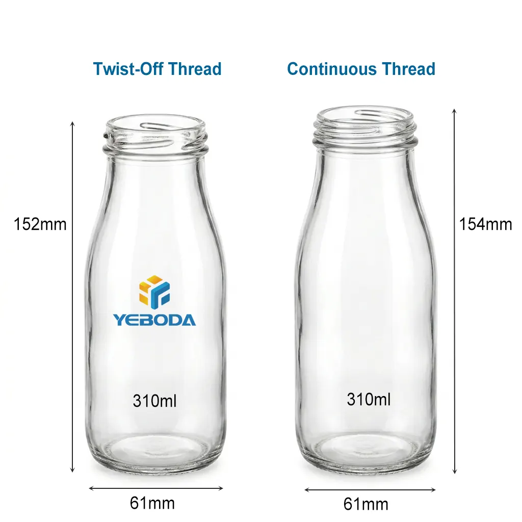 Our 310ml glass milk bottles wholesale have a shape that looks good and is also very strong. They are made from glass that does not have any bad stuff in it. These bottles are easy to hold. They look good on a shelf. You can see through them so you can see how fresh the milk or juice is. This makes them perfect for companies that want to sell quality drinks.