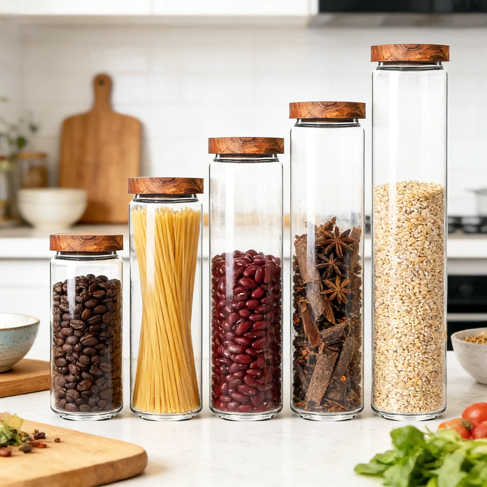 - Natural Grooved Wood Grain Lid: The lid is a simple, wood-grain type with curved grooves, making it very comfortable for the user to open and close, and it also seals the jar tightly.