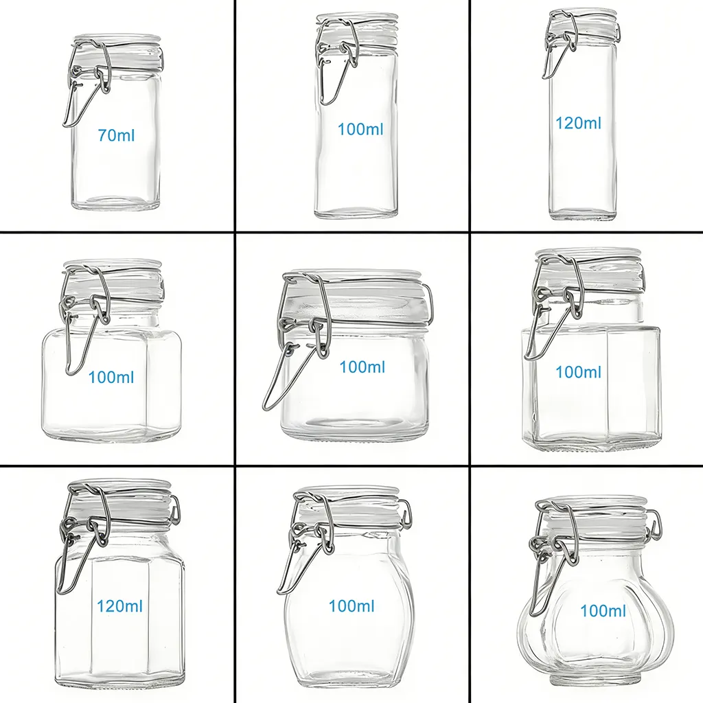 Bulk 100ml Small Hexagon Glass Food Storage Jars with Clamp Lids