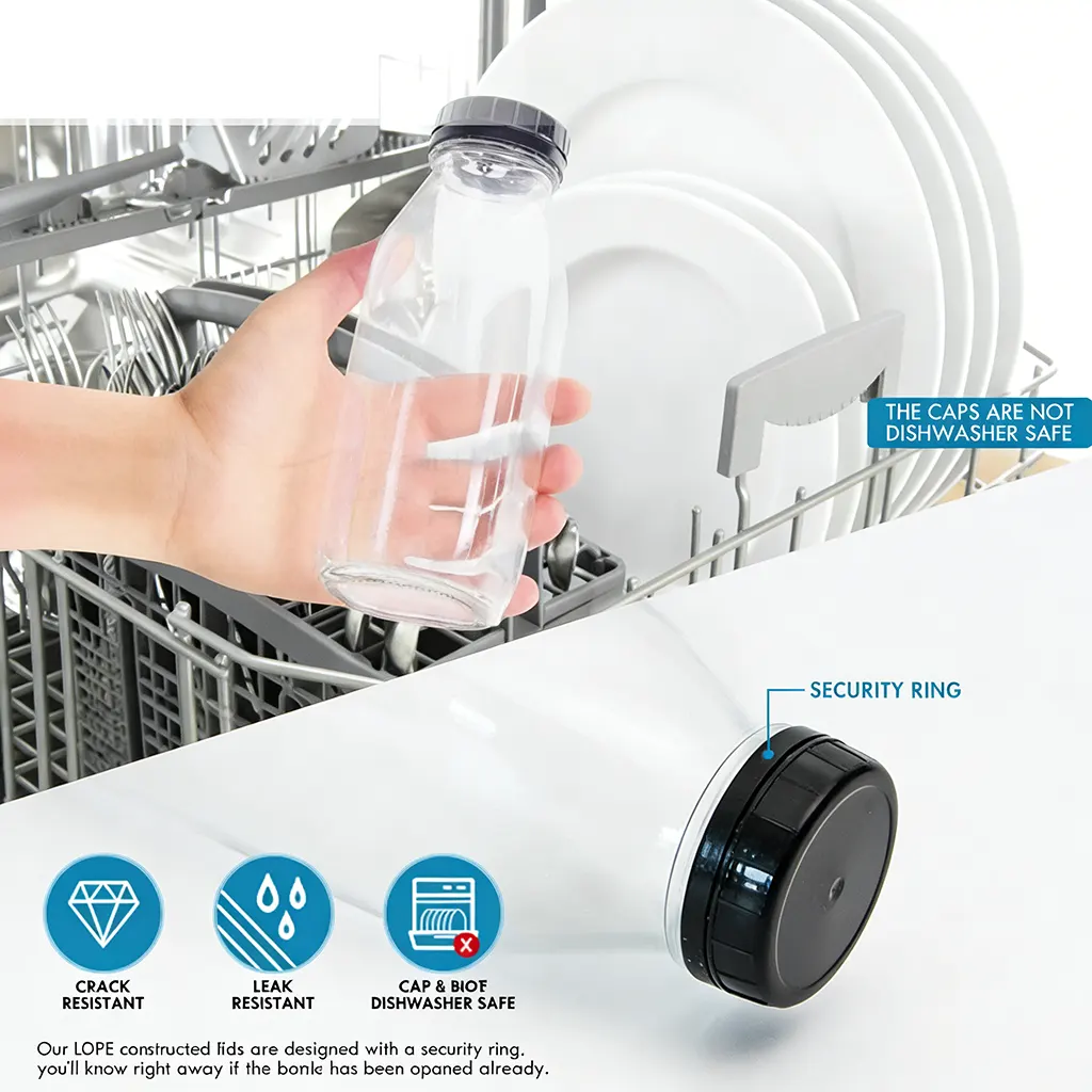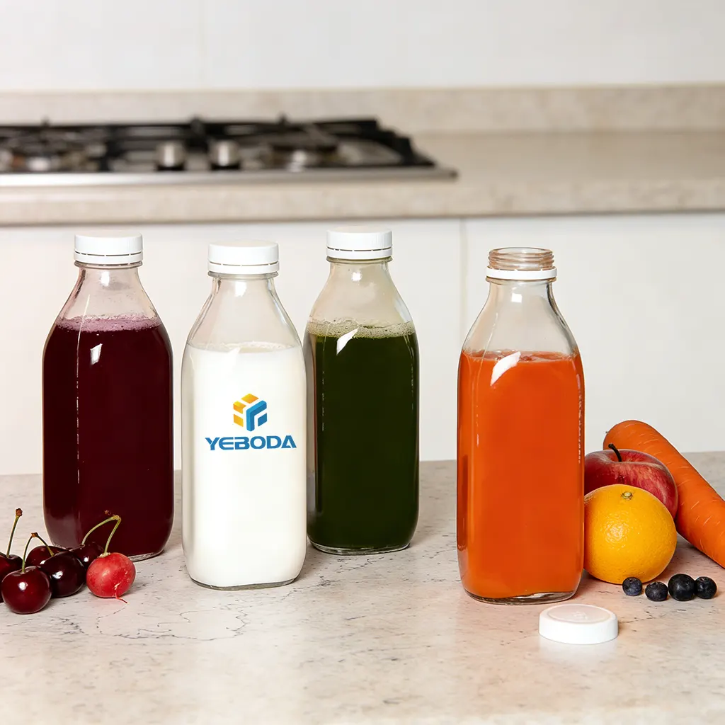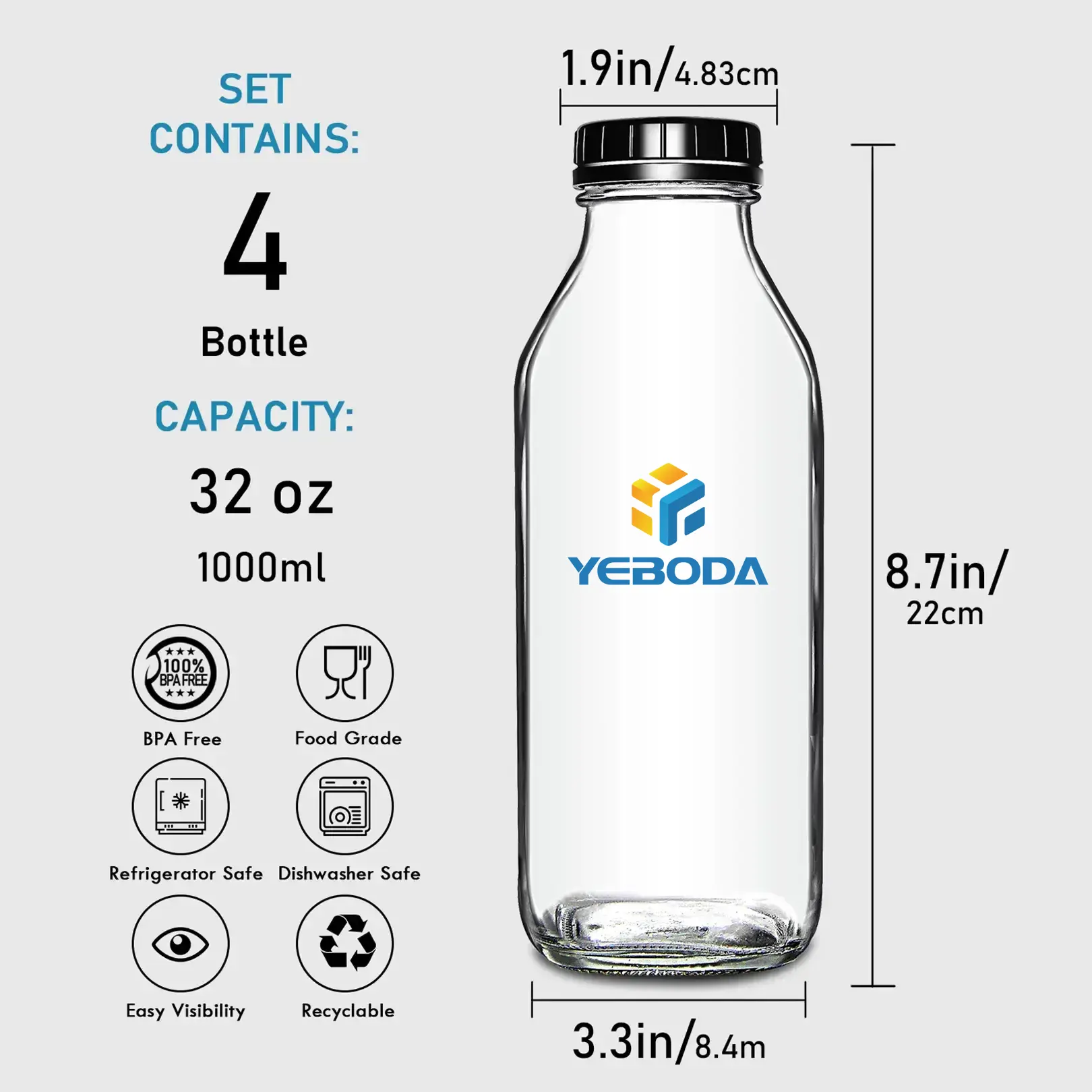 This 930 ml (32 oz/quart/2 pint) clear glass milk bottle features a classic straight-shoulder silhouette inspired by vintage milk bottles, providing a timeless look for modern dairy and beverage packaging. Made from transparent and lead-free soda-lime clear glass, this is a reusable glass milk bottle that can be used with milk, juice, yogurt drinks, and plant-based beverages other than liquid beverages. The tamper-evident security ring screw cap used in the bottle top provides the proper bottle top safe bottling and transportation, thus it can be used by dairy farms, beverage brands, wholesalers, and even the suppliers of the own labels who seek the durable and recycling glass bottle top packaging.