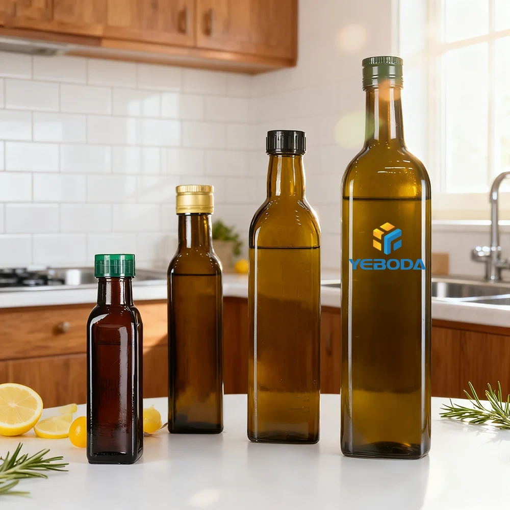 250ml 500ml 750ml Rectangular Amber Glass Olive Oil Bottles for Cooking Bulk