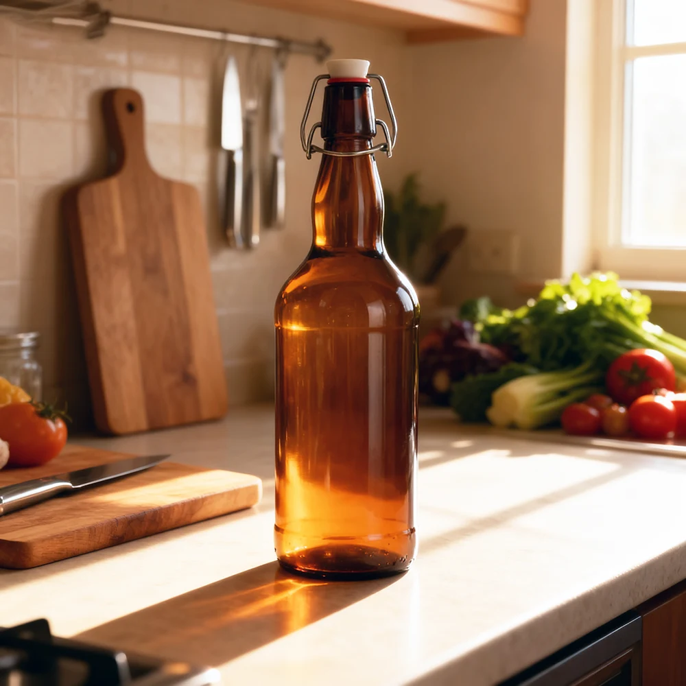 | Closure Type | Stainless steel swing tops with red/white stopper (commonly called pop top bottles) |