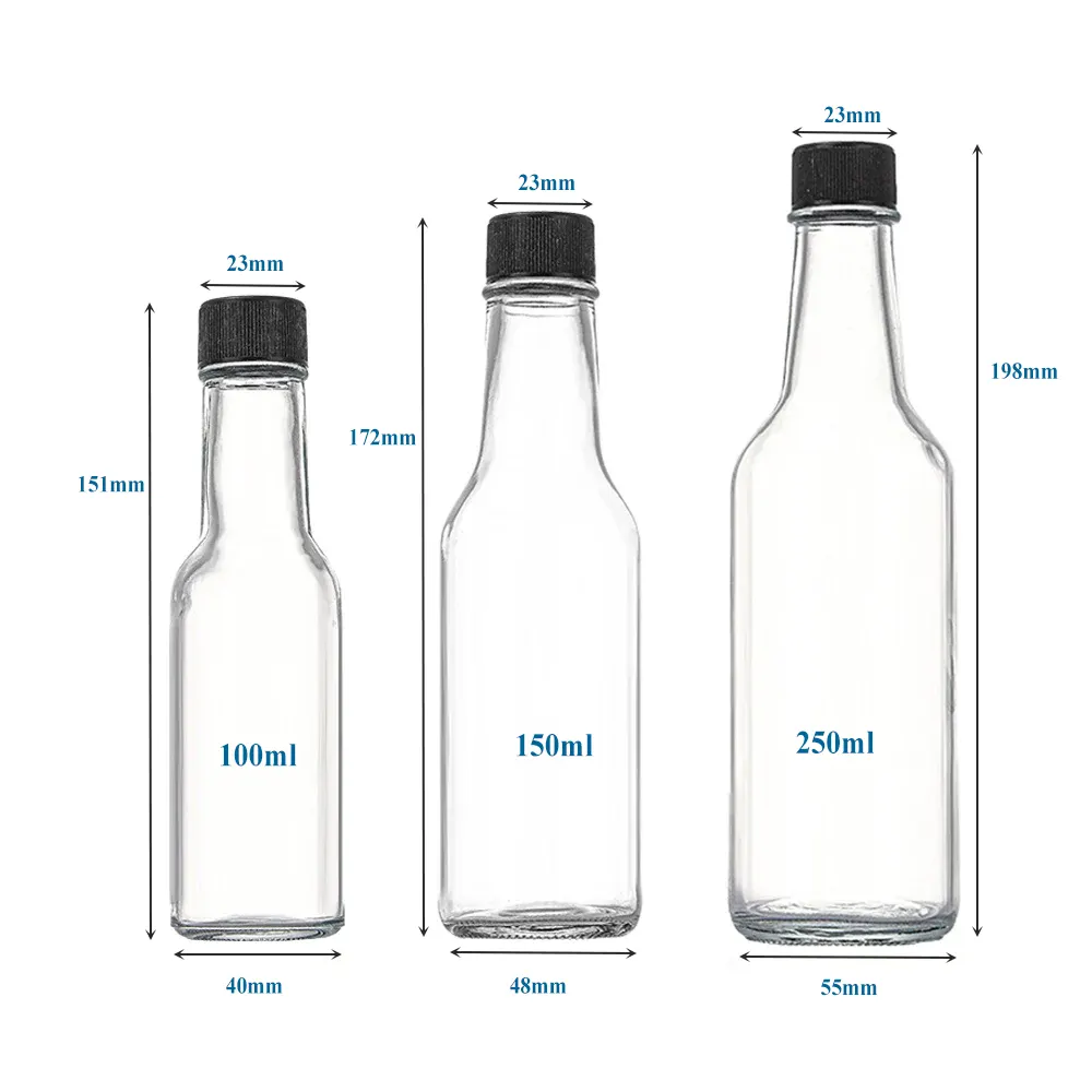 Wholesale Round Glass Hot Sauce Bottles 100ml 150ml 200ml