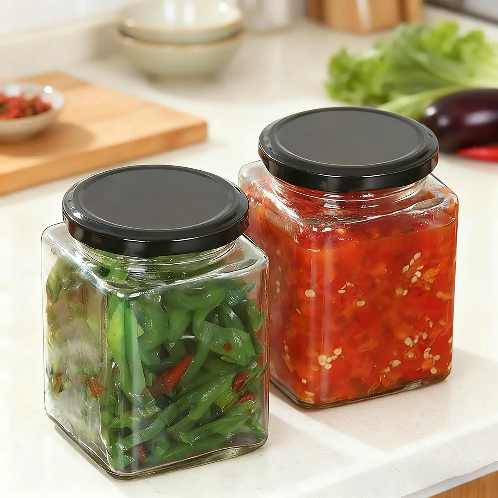When a food factory that specializes in pickled peppers and salads decided to upgrade their packaging, they made a choice of our square empty pickle jars. The bright clear glass very much helps the products to stand out from the rest on the supermarket shelves, thereby their retail appeal is getting raised considerably. We made the black leak-proof caps and label area size just right for them so that their filling line can start production directly without any changes.